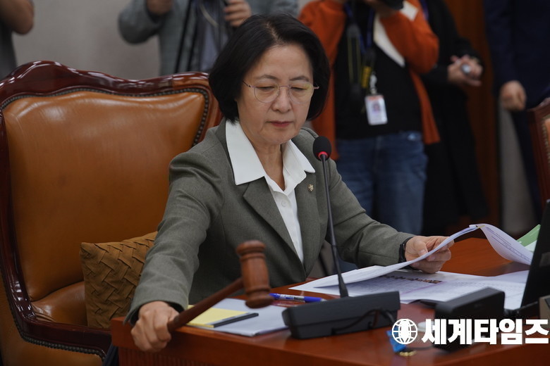 '추미애' 국회 법제사법위원장이 24일 서울 여의도 국회에서 열린 법제사법위원회의 법제처에 대한 국정감사 개시를 선언하고 있다.