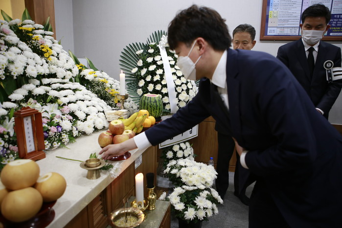 [세계타임즈 이진화 기자]국민의힘 이준석  대표는 2일 오후 11시께 허은아 수석대변인과 함께 김태호 국민의힘 의원의 부친상  빈소가 있는 경남 거창군 장례식장을 찾아 조문했다.