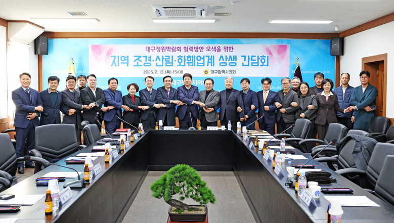[대구 세계타임즈=한윤석 기자] 대구시의회 경제환경위원회(위원장 김재용)는 제314회 임시회 기간 중인 2월 13일(목), 대구정원박람회와 지역 조경·산림·화훼업계의 상생 협력 방안을 논의하기 위해 대구시 및 지역의 관련 단체들과 간담회를 개최했다.