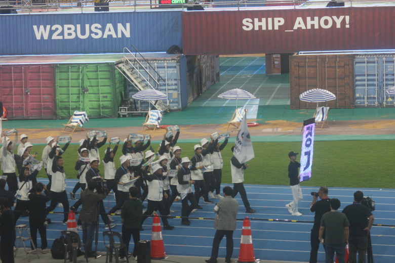 | ▲경기도선수단이 부산아시아드경기장에 입장하고 있다. |