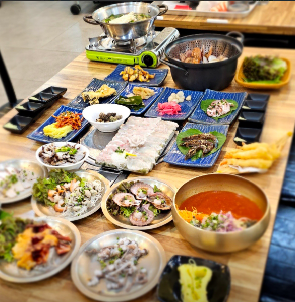 이곳 어방가는 미식가들이 사전에 미리 예약을 해두면 음식이 빠르게 나온다는 이점이 있다. 싱싱한 횟감을 시작으로 전복 찜 께장. 멍게 생선구이등 음식의 가짓수가 너무 많다 보니 상다리가 휘어지는 느낌이 든다.