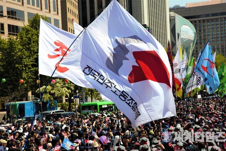 서울 광화문 세종대로 일대에서 '2023 세계 노동절 대회'를 열고 있다.