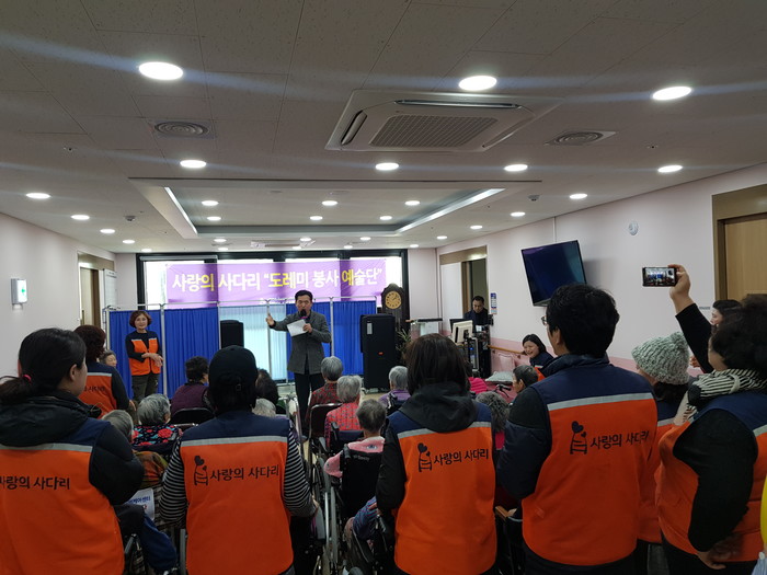 이날 위문공연봉사는 도레미봉사예술단 안경헌 단장의 진행으로 라틴싱글댄스, 오카리나, 색소폰, 장수춤, 민요, 가요 등으로 요양원 어르신들과 즐거운 시간을 보냈다.