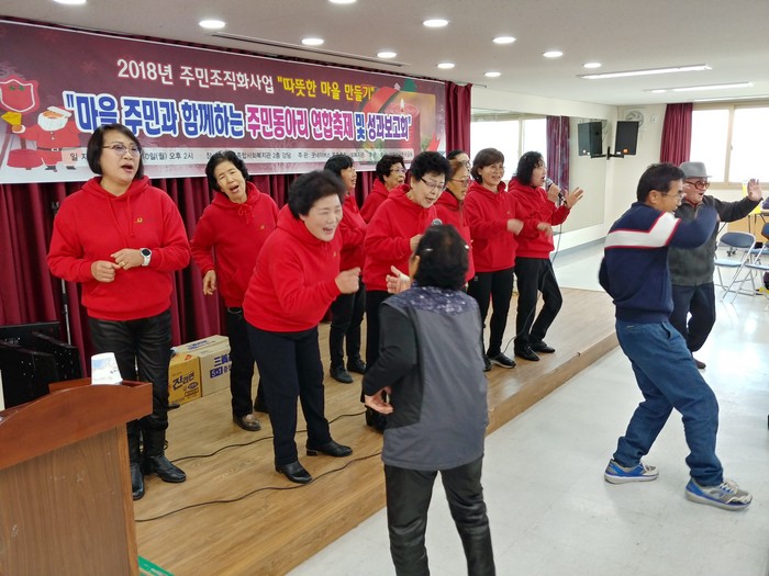 2부 순서로는 안현진 사회복지사가 참여주민들을 대상으로 ‘주민조직화 주민교육’을 진행하였다. 본 교육을 통해서 주민조직화사업이 무엇인지, 왜 우리 마을에 필요한지에 대해 주민들과 소통하고 공감대를 얻도록 노력하였다. 이어 각 동아리별 주민 대표들이 나와 1년간 동아리 활동 내용 및 성과를 주민들과 공유하며 더 많은 주민들이 주민동아리 활동에 관심을 갖고, 참여에 동참해줄 것을 독려하였다.