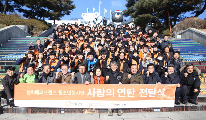 바닷물이 얼어붙는 한파에도 불구하고 한화해피프렌즈 청소년봉사단원들은 강원도 영월을 찾아 손길이 필요한 가정에 연탄을 배달했다. 청소년들의 뜨거운 이웃사랑이 거센 동장군의 기세도 물리쳤다. 지난 12년간 한화해피프렌즈 봉사단원들이 나눈 연탄은 109만장에 달하고 이 연탄을 모두 이으면 이들이 달려온 서울에서 영월까지의 고속도로 길이에 달한다.