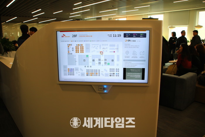 [세계타임즈 이영진 기자] SK텔레콤은 13일 5G와 AI(인공지능) 등 첨단기술이 접목된 스마트오피스를 공개하였다.