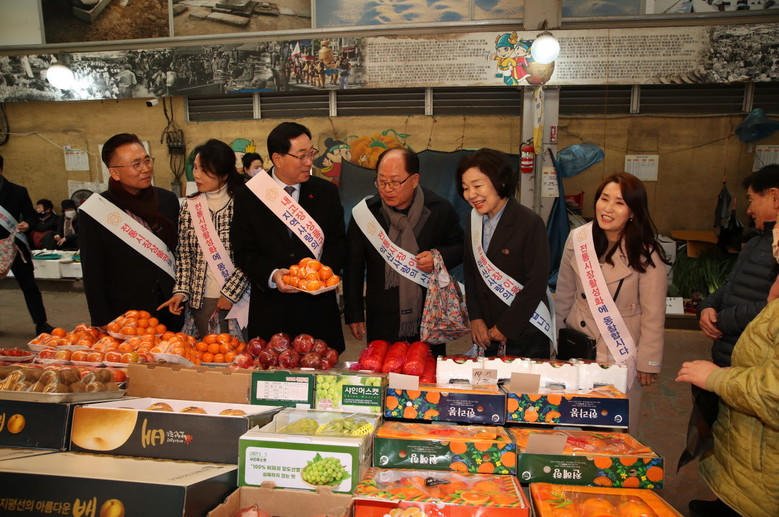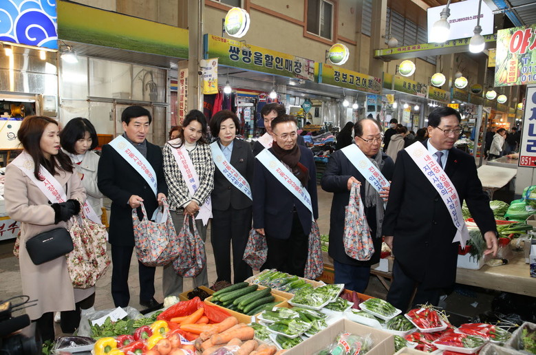 같은 날 오후, 익산시의회 의원들과 의회사무국 직원들은 서동시장을 찾아 지역 농축산물과 제수용품 등을 직접 구입하고 상인들의 애로사항을 청취하며 민생현장을 점검했다.