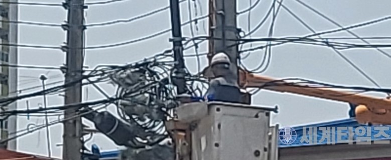 [세계타임즈 = 조성준 기자] LG유플러스는 26일 오후 12시 30분경 인천 부평구 일신로14번길 34번지 앞 도로 전주간 전선 작업을 하면서 왕복 4차로 중 1차로에 작업차량을 배치하고,  시민들을 낙하물로 부터의 어떠한 보호 조치도 없이(신호수등 미 배치)통행토록 하는등 전반적인 안전 무개념의 일방적 작업을 실시. 지나는 시민들의 안전을 심각하게 위협하였다.