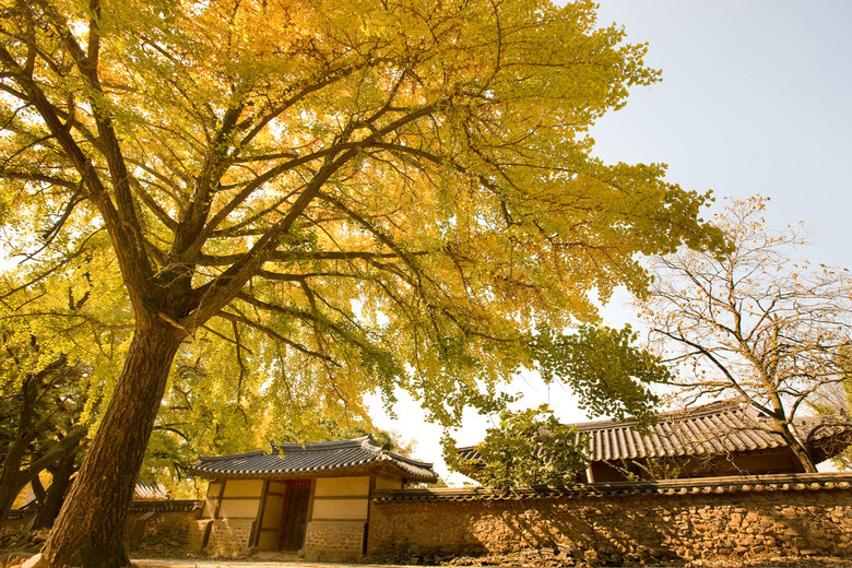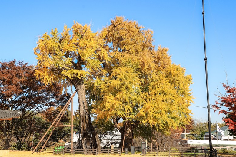 노랗게 물든 은행나무와 고즈넉한 성곽이 어우러진 당진 면천읍성에는 천연기념물 제398호로 지정된 1100년 된 고목 은행나무가 있다.