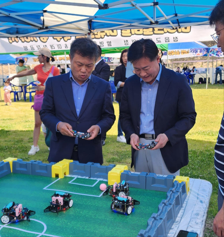 정읍교육지원청 4차산업체험문화공간과 미래창작공방, 발명교육센터에서 운영한 ▲ AR·VR 체험 ▲ 드론(스카이킥) 체험 ▲ 코딩 로봇을 활용한 문제해결력 기르기 ▲ 마이크로비트 마퀸으로 축구 경기하기 등 요즘 각광 받고 있는 미래교육 주제에 걸맞은 부스 운영으로 학생들의 탐구능력을 향상시키고 미래사회에 대비한 역량 강화에 도움이 될 것으로 기대된다.