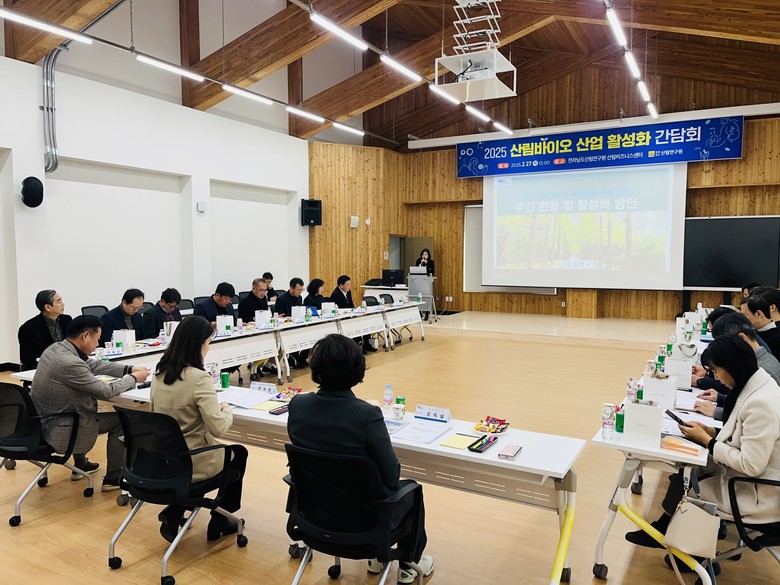 간담회에서는 오득실 원장이 산림바이오 거점단지 조성현황 및 운영계획을 발표하며 전남 산림자원을 활용한 산업화 가능성을 제시했다. 이어 참석자들은 바이오소재 개발과 대량 재배기술 확보 방안 등 산림바이오 산업 발전 전략을 심도 있게 논의했다.
