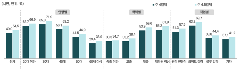 연령대별로는 20~40대, 대졸 이상, 화이트칼라 직군에서 상대적으로 높은 지지를 보였다.