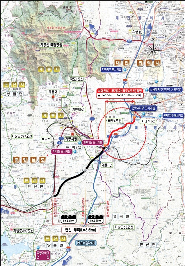 또 평상시에도 대전과 계룡을 오가는 출퇴근 차량의 통행시간이 약 5~10분 단축될 것으로 예상되며, 방동저수지를 찾는 시민들의 교통 편의도 크게 향상될 전망이다.