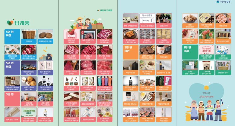 한편, 이달 기준 세종시 고향사랑기부제 답례품은 세종시농협쌀조합공동사업법인, 카카오파이브, 기우리다 등 모두 37곳 업체, 30개 품목이다.