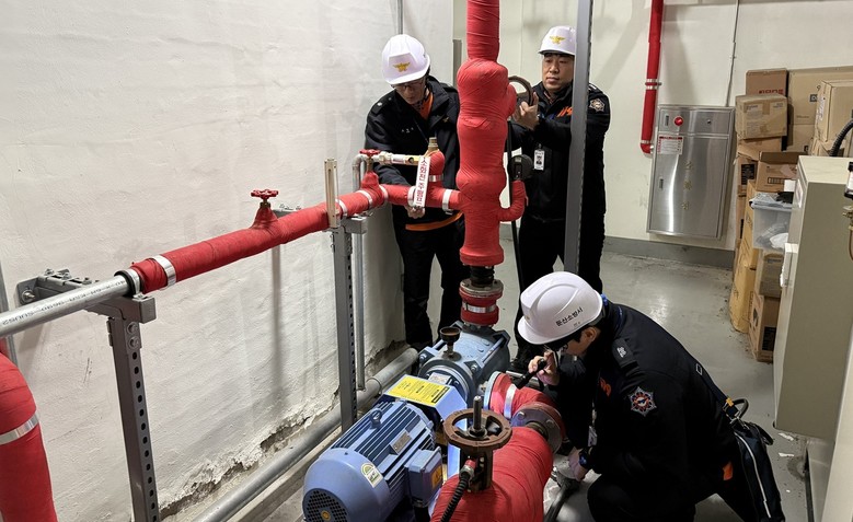 | ▲ 소방펌프 폐쇄 행위 등 확인하는 소방공무원(본 사진은 참고사진으로 이번 긴급 화재안전조사와는 관련 없슴.) |