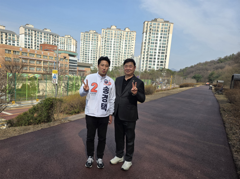| ▲성남시의회 김종환 의원(판교·백현·운중·대장동) (우측) / 송경택 경기도의원 예비후보 (좌측). |