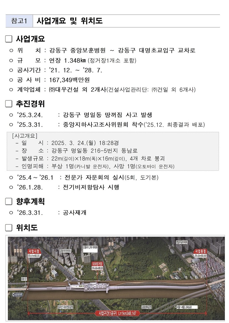 - 국토부 합동 조사 결과 반영, 굴착 시 주변 지반․외력 하중 최대한 견딜 수 있도록 보강