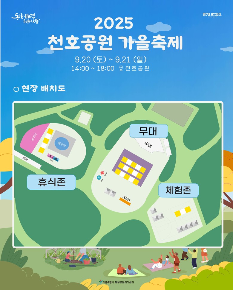 행사 관련 상세 내용은 서울의 공원 누리집(parks.seoul.go.kr), 인스타그램(@seoul_parks_official)에서 확인할 수 있으며, 기타 문의 사항은 동부공원여가센터 공원여가과(02-460-2943)로 연락하면 된다.