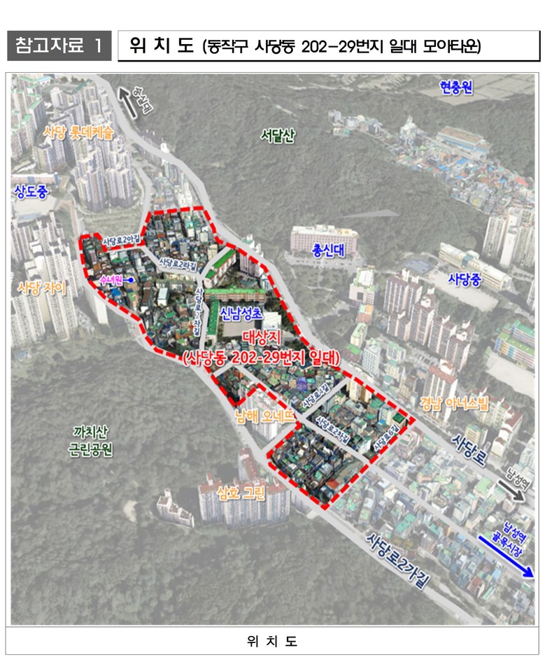 동작구 사당동 202-29번지 일대 모아주택 8개소 추진…1,725세대 공급