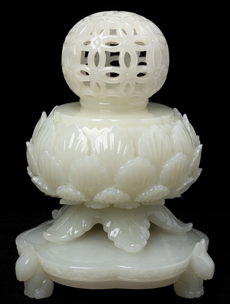 옥장 엄익평 보유자 작품 “백옥연꽃투각향로”