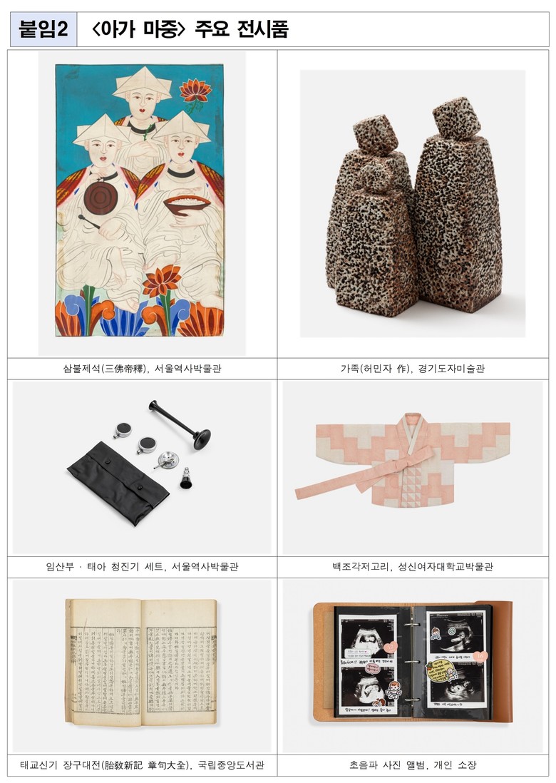 - 나의 행복했던 시간을 추억해 보는 공간을 통해 저출생 극복의 희망 메시지 전달 기대 [서울 세계타임즈=이장성 기자] 서울역사박물관(관장 최병구)은 서울 시민의 임신과 출생 문화를 담은 <아가 마중>을 11월 14일(금)부터 서울생활사박물관 4층 기획전시실에서 개최한다고 밝혔다.