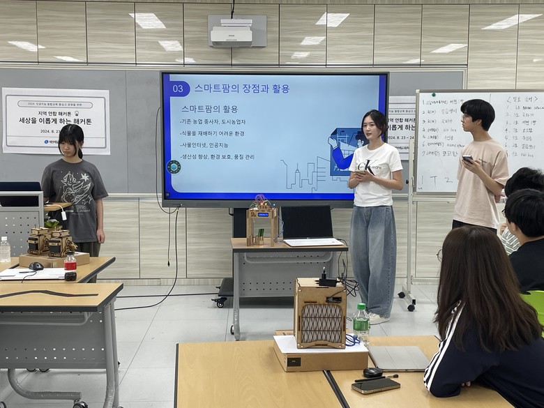 이미지를 통해 ▲쓰레기를 자동으로 분리하는 컨베이어벨트 ▲교통약자를 위한 자율주행 자동차 ▲스마트팜 등 다양한 아이디어를 소프트웨어로 구현하며, 서로의 의견을 나누며 성장하는 모습을 보여주었다.