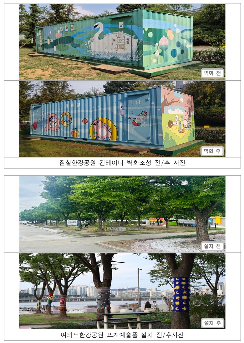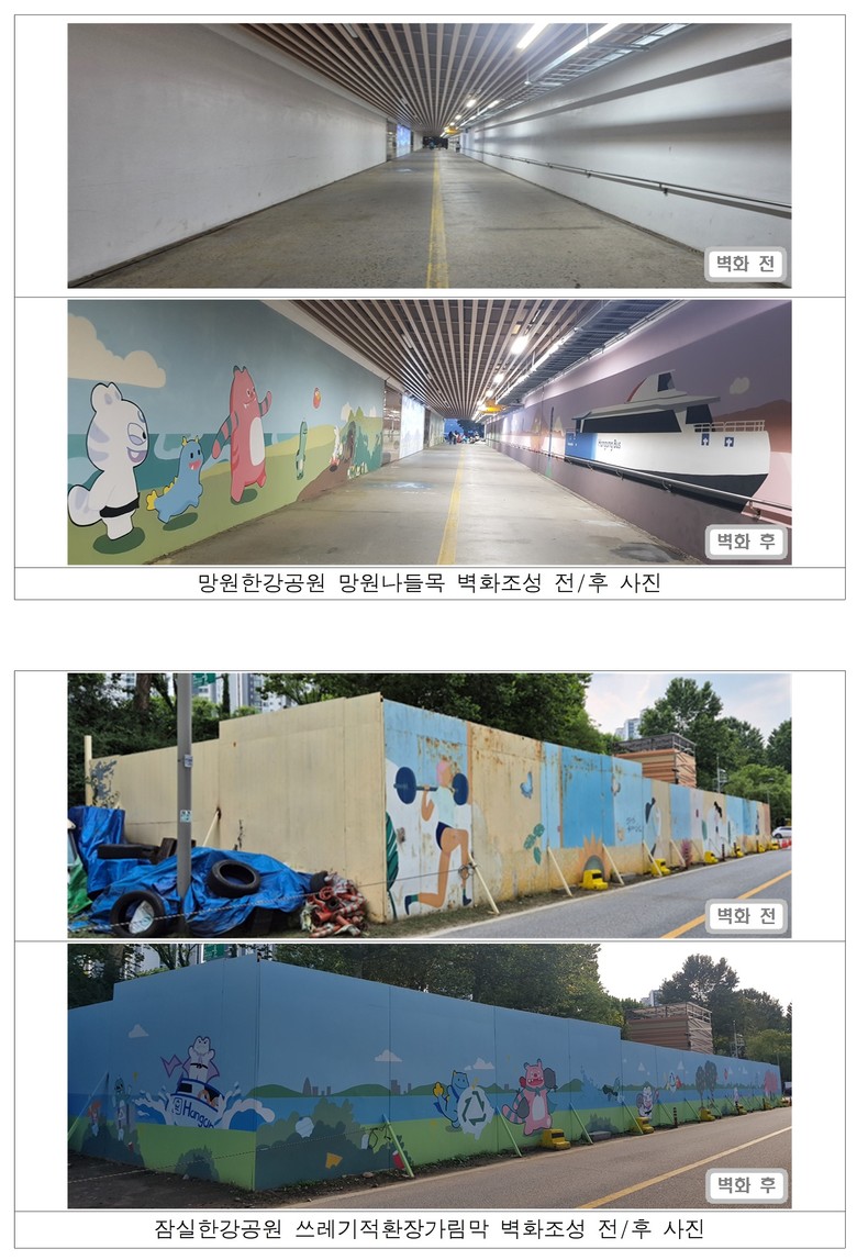 지난 2016년부터 한강공원 곳곳의 다소 낡은 시설물에 벽화를 그려 넣는 봉사활동을 실시하고 있는 서울시는 기존 벽화의 지속적인 유지·관리는 물론, 향후 추가 선정된 노후 시설물에도 벽화 및 도색을 계속 진행할 계획이다.