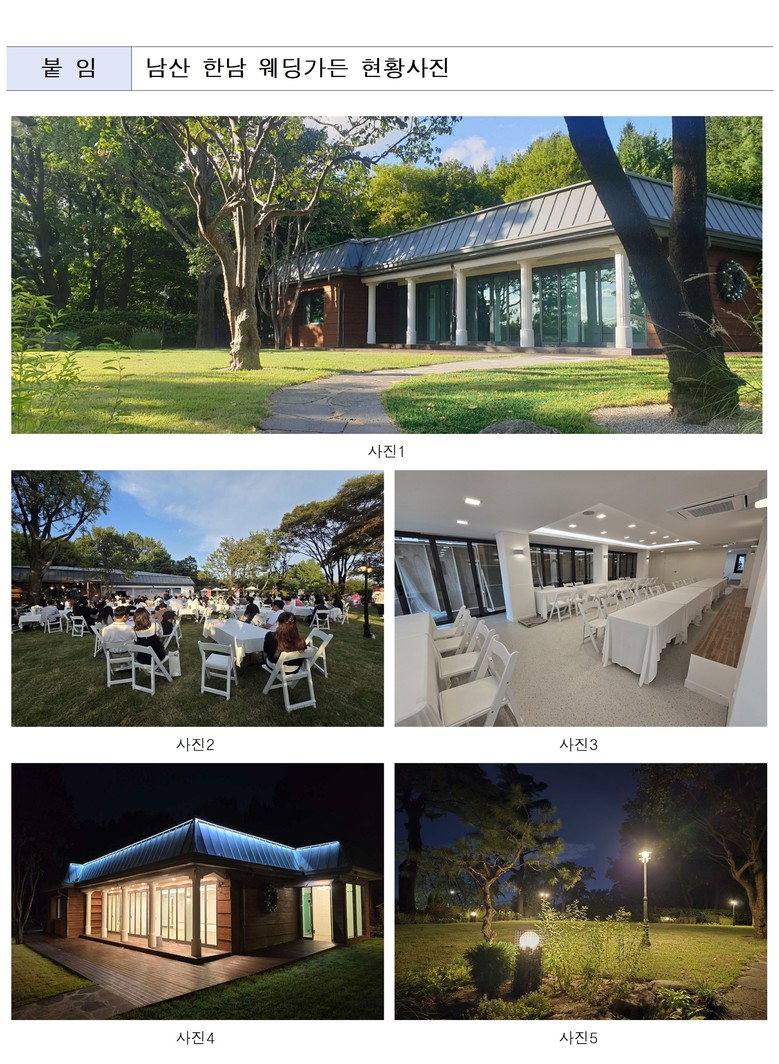 이수연 서울시 정원도시국장은 “남산 한남 웨딩가든은 건물과 잔디마당, 정원이 조화롭게 어우러져 도심 속 자연 친화적인 결혼식을 원하는 예비부부들에게 매우 특별한 공간이 될 것”이라며, “앞으로도 시민들이 공원 내에서 다양한 문화와 여가 활동을 즐길 수 있도록 지속적으로 공간을 개선하고 확장해 나가겠다”고 전했다.