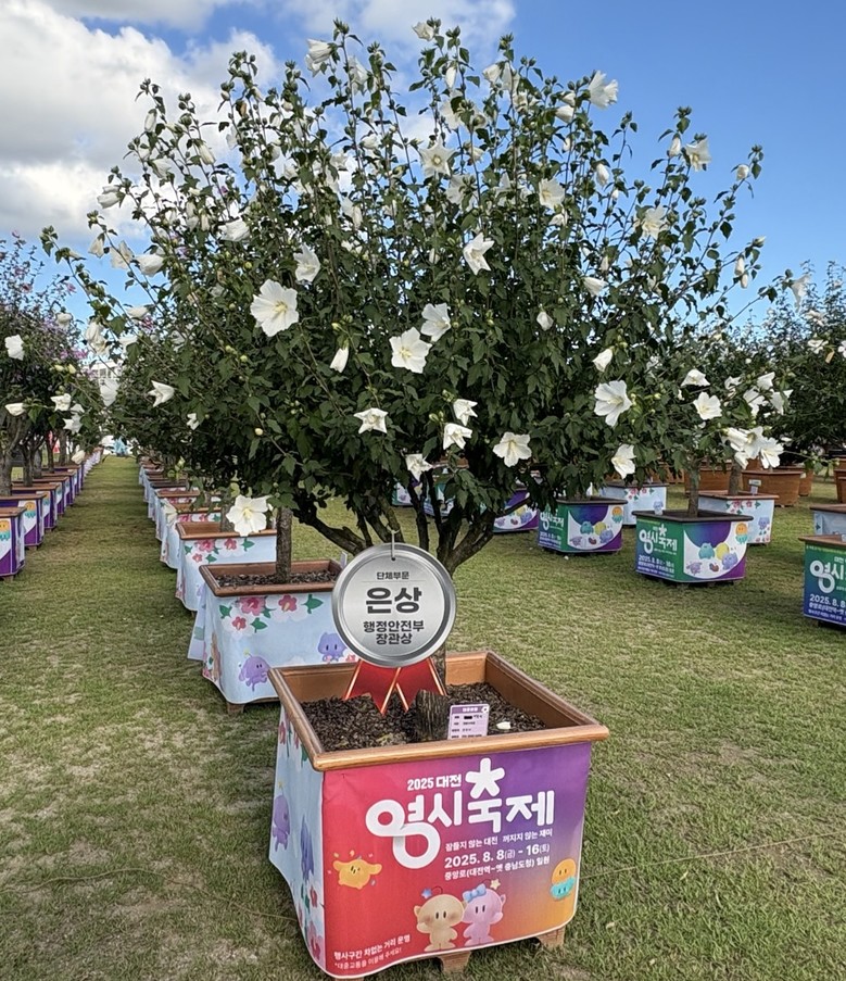 대전시는 지난 14일 국립세종수목원에서 열린 산림청 주관 ‘2025년 무궁화 우수 분화 품평회’에서 한밭수목원이 단체 부문 은상(행정안전부장관상)을 받았다고 18일 밝혔다. 이번 대회에는 전국 13개 시·도에서 약 900점의 무궁화 분화가 출품됐으며, 대전은 단체 85점과 개인 20점 등 총 105점을 선보였다.