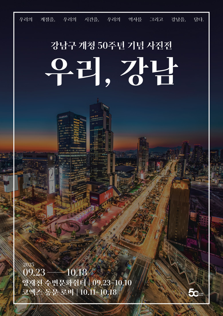 조성명 강남구청장은 “‘우리, 강남’은 지난 50년을 함께 걸어온 강남 사람들의 시간과 오늘의 일상을 담은 전시”라며 “양재천 물길에서 시작해 코엑스로 이어지는 이번 순회전이 시민 모두에게 열린 기념의 장이 되길 바란다”고 밝혔다. 이어 “사진 속 강남의 생동감을 통해 미래 100년의 희망을 함께 나누길 바란다”고 덧붙였다.