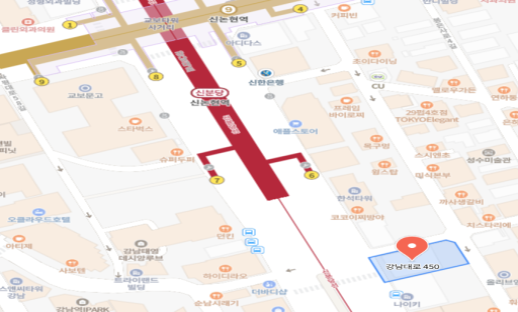 | ▲ 위치도(신분당선 신논현역 6번출구) |