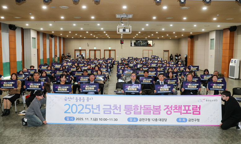 [금천구 세계타임즈=이장성 기자] 금천구(구청장 유성훈)는 지난 7일 구청사 12층 대강당에서 보건·복지·의료·돌봄 분야 전문가와 관련 기관, 명예사회복지공무원 등 150여 명이 참석한 가운데 ‘2025년 금천 통합돌봄 정책포럼’을 성황리에 개최했다고 밝혔다.