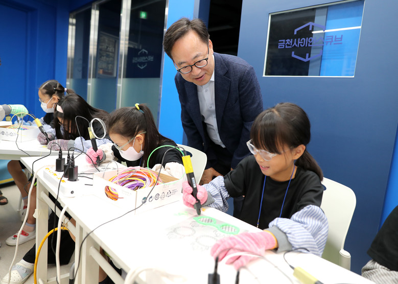 | ▲ 유성훈 금천구청장이 금천사이언스큐브 교육에 참여하고 있는 학생들을 응원하고 있다 |