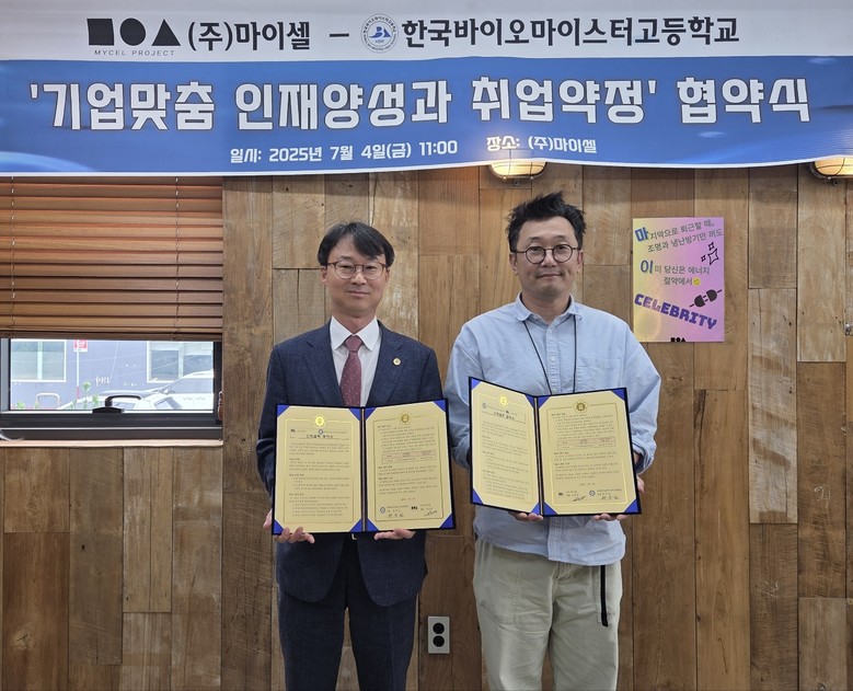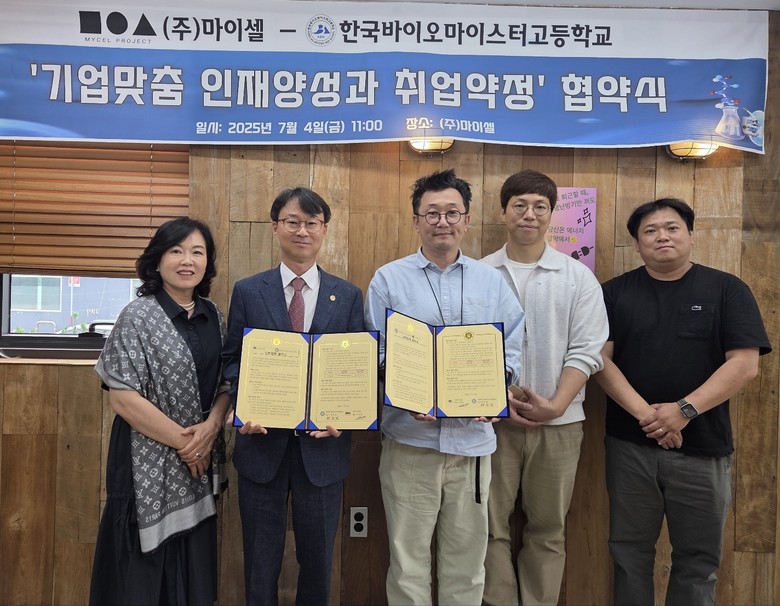 [충북 세계타임즈=이현진 기자] 한국바이오마이스터고등학교(교장 한석일)는 4일(금), ㈜마이셀(대표 사성진)과 인재 육성 및 취업약정을 위한 산학협력을 체결했다.