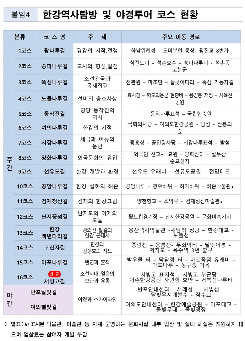 - 한강 역사‧인물 이야기 듣는 ‘한강역사탐방’, 11월까지… 스탬프투어로 더욱 재미있게
