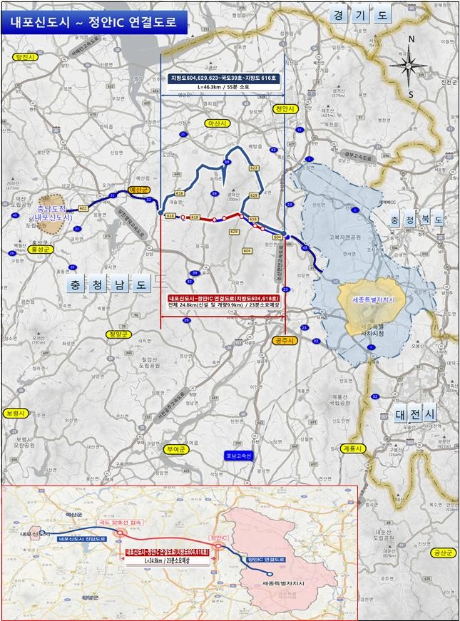 세종시와 내포신도시의 연결도로망 구축은 지역 간의 연계성 확보와 신성장 거점 간의 결속력을 강화하고 지역 동반 성장을 통한 생활 여건 개선 및 균형 발전을 도모할 것으로 기대된다.