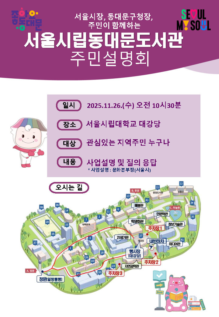 이필형 동대문구청장은 “서울시립동대문도서관은 동북권을 대표하는 문화·교육 인프라로 조성되는 중요한 사업”이라며 “건립 절차와 진행 상황을 주민 여러분께 투명하게 공유하고, 다양한 의견을 성실히 반영하는 데 최선을 다하겠다”고 말했다.