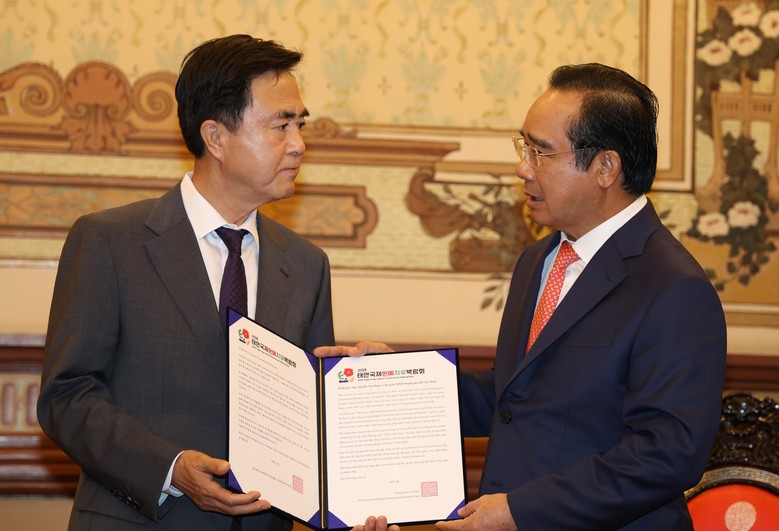 해외시장 개척 등을 위해 베트남 출장에 나선 김태흠 지사는 27일 오후 늦게 호치민시청에서 응우옌 반 득 호치민시 인민위원장을 접견했다.