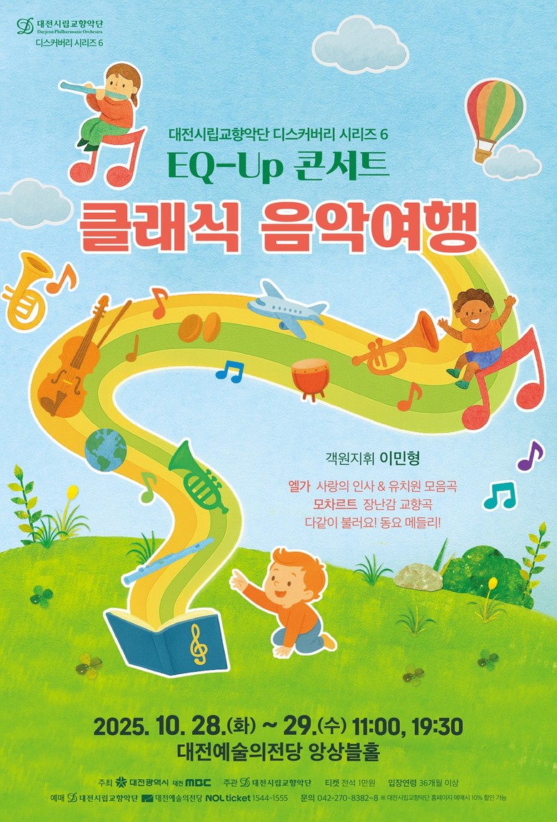대전시립교향악단의 어린이를 위한 공연은 2009년부터 매년 이어져 온 전통 있는 시리즈로, 어린이들의 감성과 지성을 함께 길러줄 수 있는 다채로운 음악들을 선사해 왔다. 미래의 음악 애호가들에게 클래식의 아름다움과 즐거움을 전하는 뜻깊은 자리가 될 전망이다.