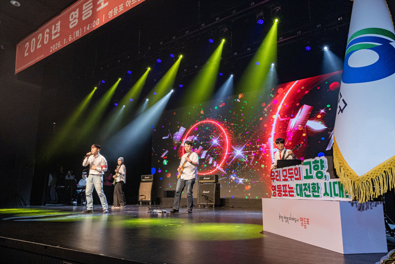 | ▲ 26년 영등포구 신년인사회 당시 청년동아리 ‘수은중독’ 축하 공연 |