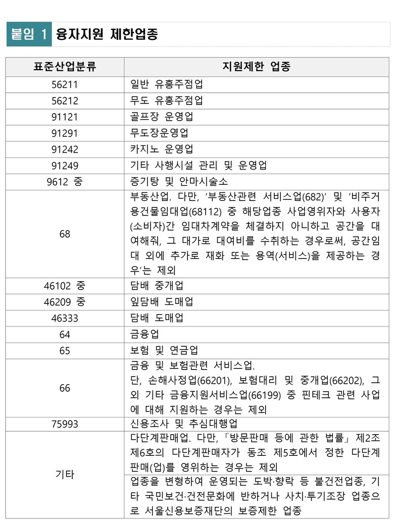 지원 대상은 중소기업에 해당하는 서울시 소재 사회적경제기업((예비)사회적기업, 협동조합, 마을기업, 자활기업)과 소셜 벤처(‘서울특별시 소셜벤처 지원에 관한 조례’ 규정에 따른 기업) 등이며, 유흥업과 도박·향락·투기 등 융자지원 제한업종과 신용보증지원이 불가능한 기업 등은 지원 대상에서 제외된다.
