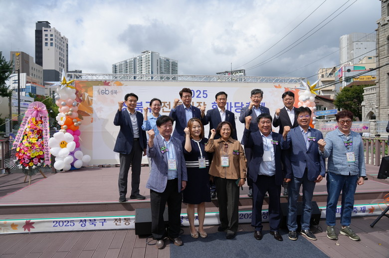 | ▲ 전통시장 한마음 축제에서 이승로 성북구청장과 관계자들이 기념촬영을 하고 있다 |