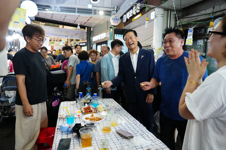 | ▲ 이승로 성북구청장이 주민들과 함께 장위전통시장 주락이 맥주축제를 즐기고 있다 |