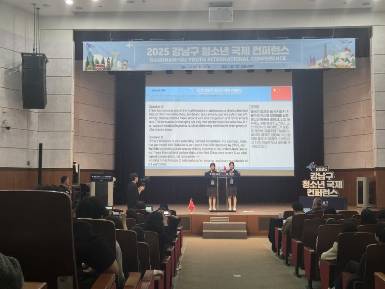 [강남구 세계타임즈=이장성 기자] 꿈이 모이는 도시, 미래를 그리는 강남구(구청장 조성명)가 지난 11월 7일 SETEC 컨벤션센터에서 개최한 ‘청소년 국제 콘퍼런스’가 성공적으로 마무리됐다. 관내 중학생을 대상으로 생성형 인공지능(AI)과 영어를 활용해 글로벌 이슈에 대해 특정 국가의 입장을 대변하도록 구성된 이번 대회는 단순한 말하기 대회를 넘어 ‘AI 시대 세계시민 교육’의 새로운 출발점이 됐다는 평가를 받았다.