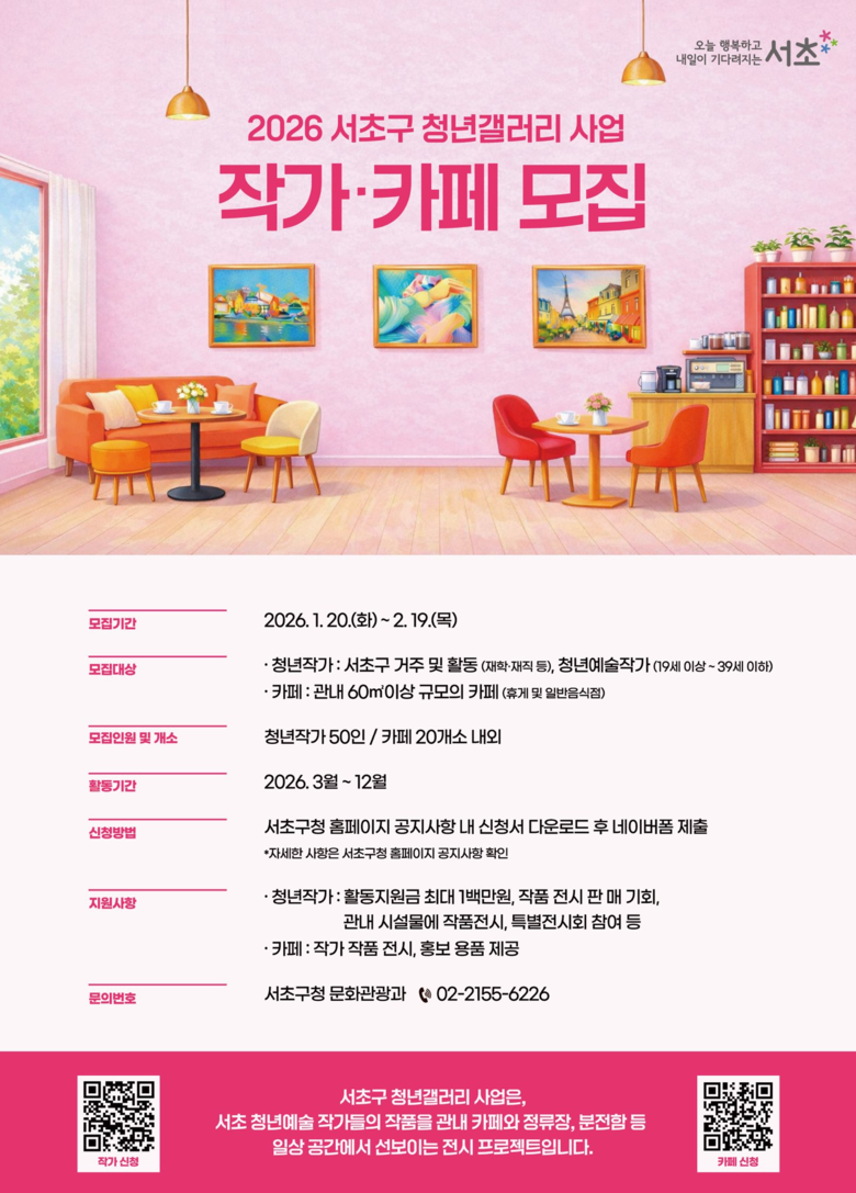 - 2월 19일까지 ‘서초 청년갤러리’ 청년예술작가 50명 모집
