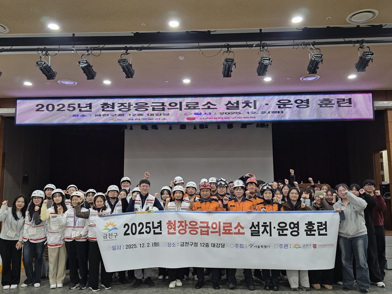 [금천구 세계타임즈=이장성 기자] 금천구(구청장 유성훈)는 지난 2일 금천구청 종합청사 12층 대강당에서 ‘2025년 현장응급의료소 설치‧운영 훈련’을 실시했다고 밝혔다. 이번 훈련은 상가건물 대형 화재로 다수 사상자가 발생한 상황을 가정하며 지역주민의 안전을 지키기 위해 진행됐다.