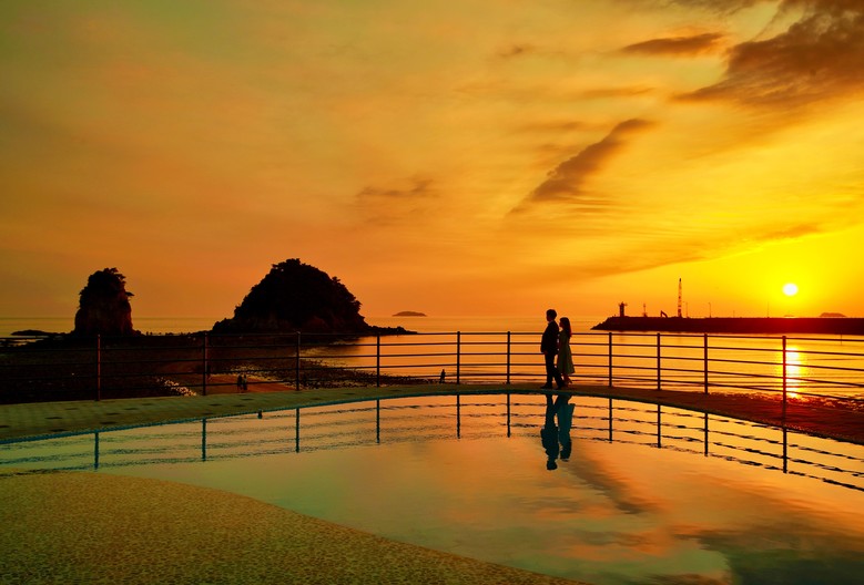 바닷물이 빠지면 바위까지 직접 걸어갈 수도 있으며, 인근에 조성한 인피니티 스튜디오는 감각적인 사진 촬영 장소로 인기다.