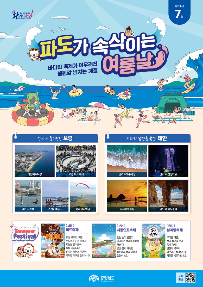 7월 주제는 ‘파도가 속삭이는 여름날’로, 본격적인 여름을 맞아 바다와 축제가 어우러진 보령과 태안의 대표 관광지를 소개한다.