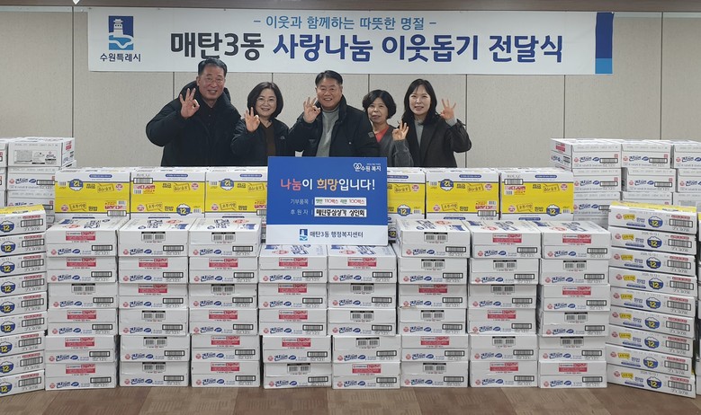 이번 기탁은 설 명절을 앞두고 지역사회에 따뜻한 활력을 불어넣고, 이웃과 함께 정을 나누고자 하는 상인회 회원들의 자발적인 참여로 마련되었다. 기탁된 물품은 매탄3동 행정복지센터를 통해 기초생활수급 가구, 차상위 가구 등 저소득층 이웃들에게 전달되어, 모두가 풍성하고 든든한 명절을 보낼 수 있도록 지원될 예정이다.