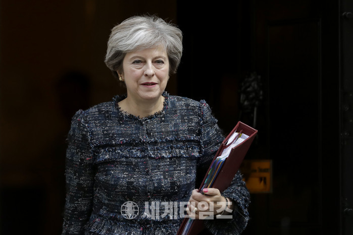 테리사 메이 총리가 13일(현지시간) 런던에 있는 의회에서 질의를 마치고 떠나고 있다. 2017.09.14